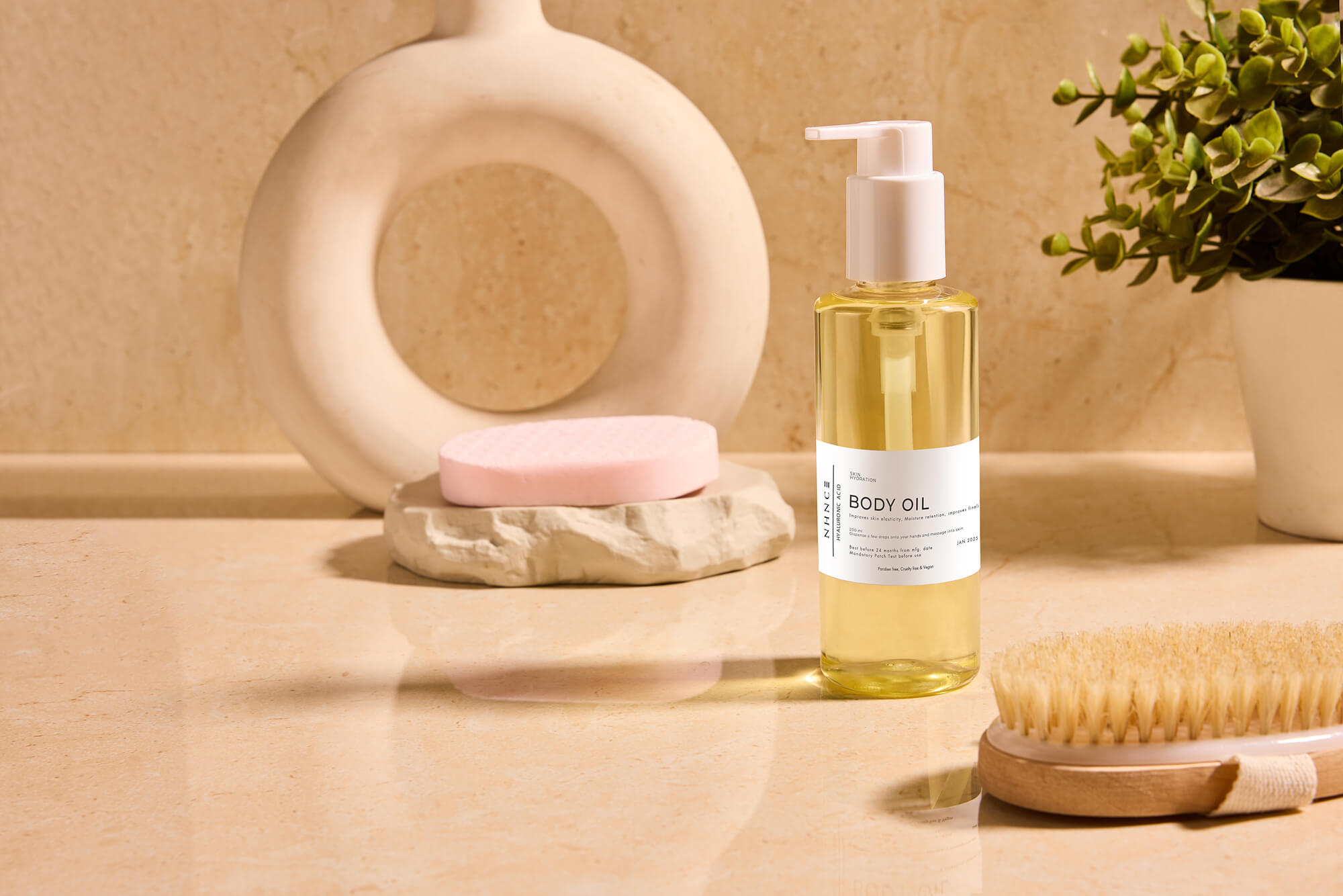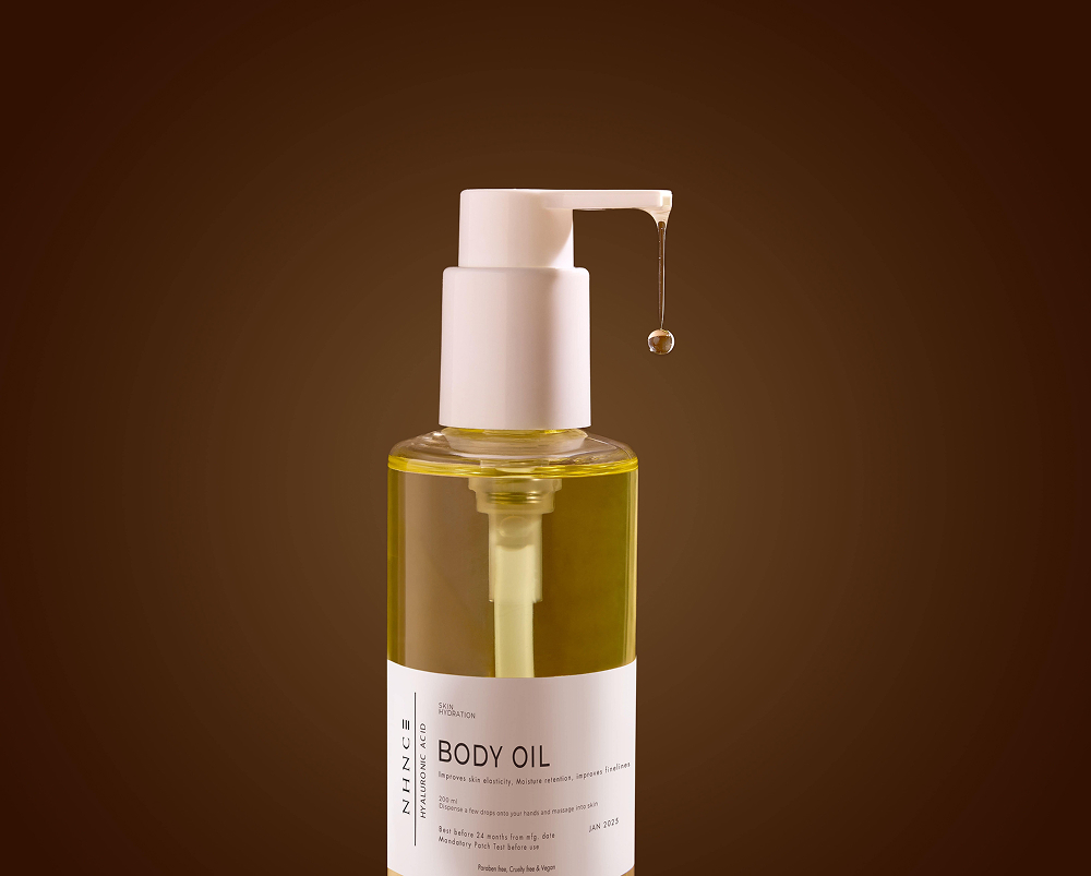 Hey there. So finding the right skincare can be quite tricky. I've been using this body oil by Nhnce for over a month now, and let me tell you, it did not disappoint. So the climate in Dubai is a little dry, which leaves your skin feeling very dry. And even a thick layer of lotion couldn't do the job. So people advise parachute oil, but again, it's very sticky. This was my instant favorite because it's very non-greasy and it's very friendly to use daily. Oh, and the fragrance is therapeutic. You must give it a try. It's a staple in my routine now.